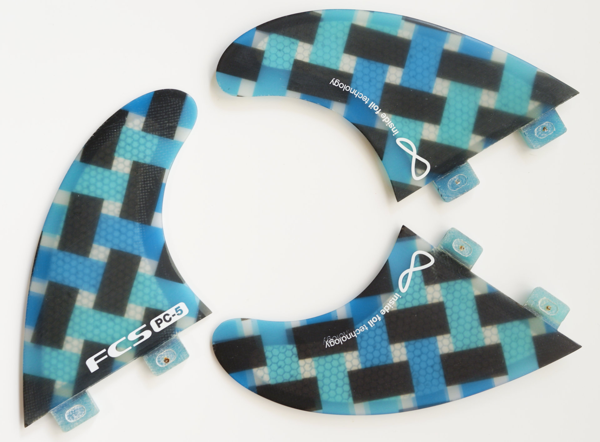 FCSフィン PC-5 トライが入荷。サイドフィンには、流体力学に沿ったフォイルであるインサイドフォイルテクノロジー(ITF)を備え、フィン先端のフレックスがとても反応のいい、ハニカムコアマットの超軽量なパフォーマンスフィン。このテンプレートは、とても軽くて扱いやすく、スピード・安定感・操縦性のしやすさがバランスよく備わった、どんなサーフィンにも使いやすいフィン。
